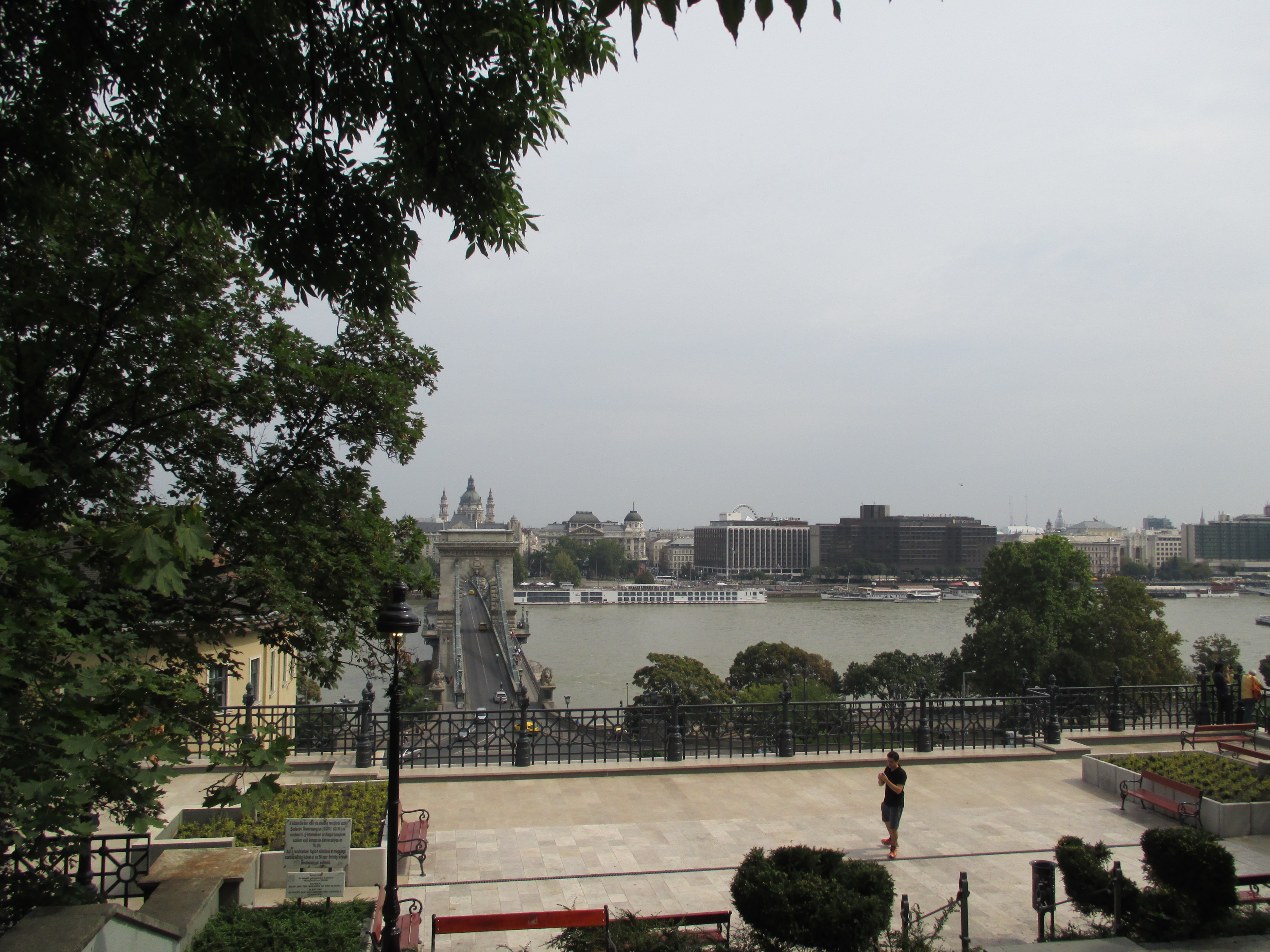 IMG_0950 Published 09/12/2014 at 3264 × 2448 in Budapest, Hungary ← Previous Next → We crossed the Chain Bridge and are climbing the hill to the castle. Looking back at Pest.