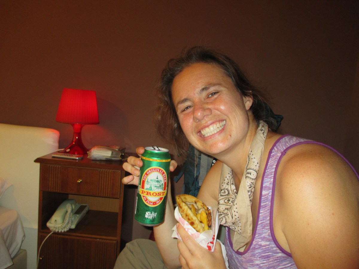 IMG_2291 Published 10/23/2014 at 3264 × 2448 in Meteora, Greece ← Previous Next → A gyros pita and the cheapest beer we could find