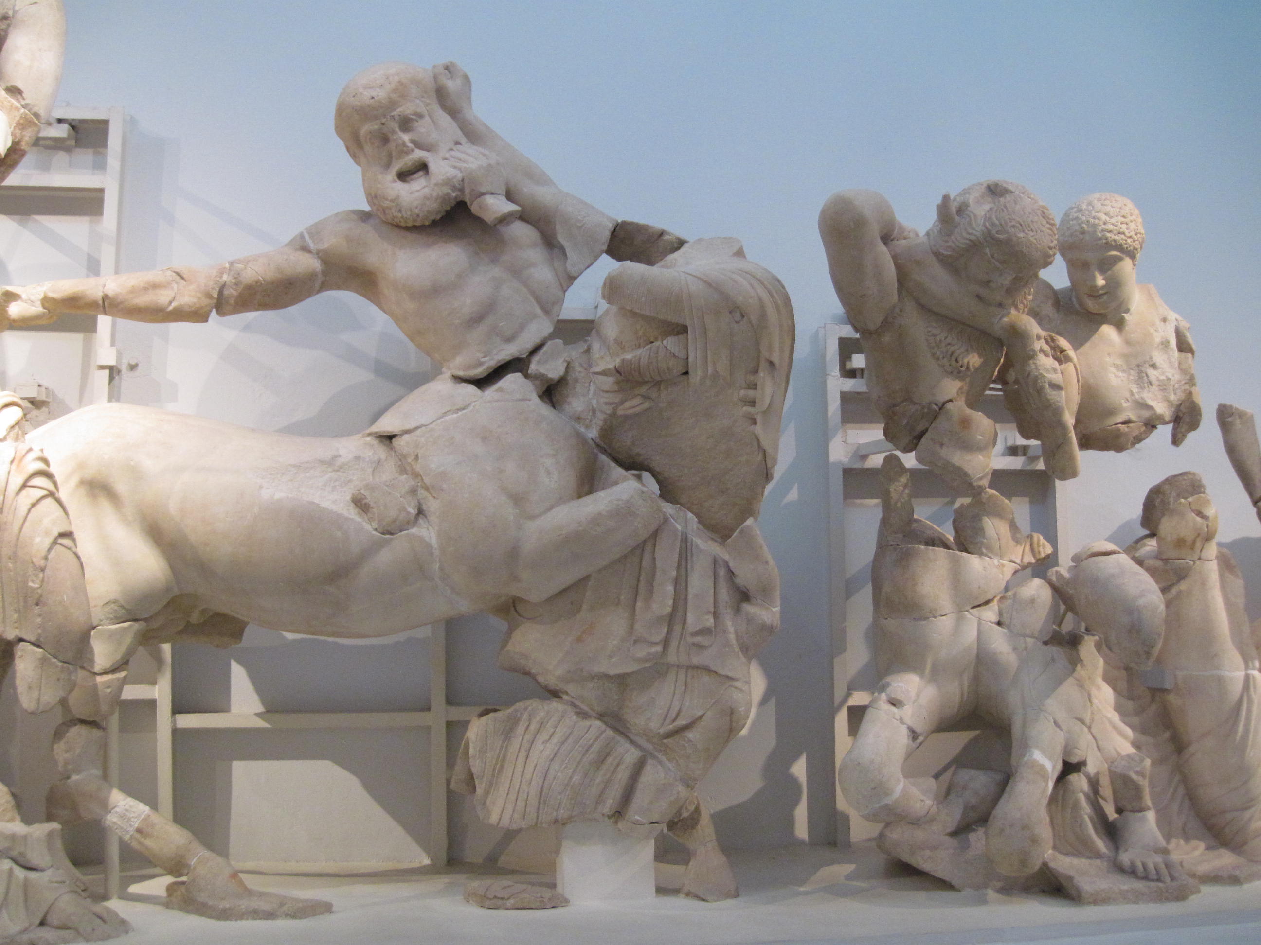 IMG_3054 Published 11/04/2014 at 2592 × 1944 in Olympia, Greece ← Previous Next → Scene from the West Pediment- the battle of the Lapiths and centaurs