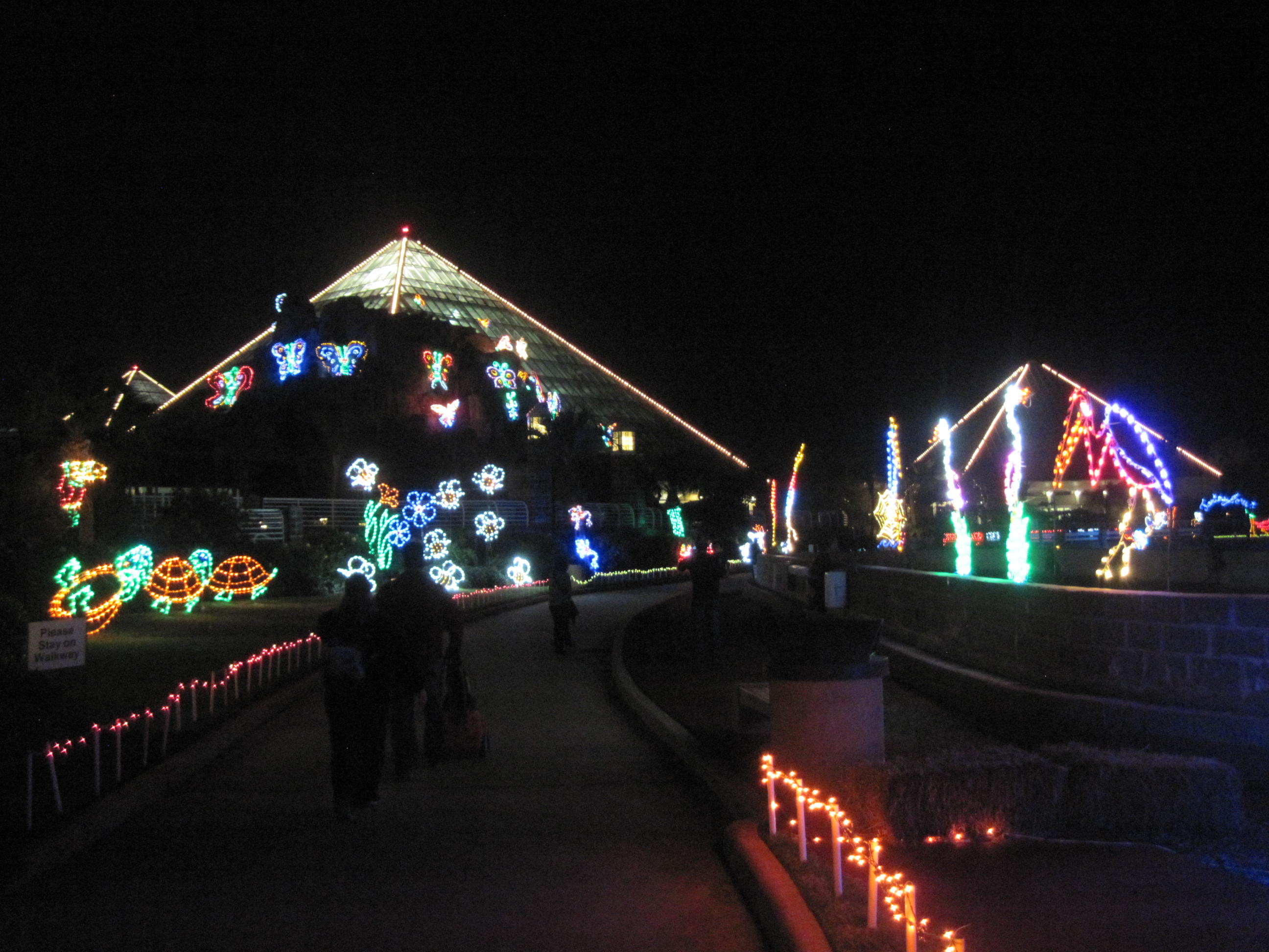 IMG_4956 Published 01/01/2015 at 2592 × 1944 in Visiting Galveston, Texas as Tourists ← Previous Next → The pyramids of Moddy Gardens illuminated for the event