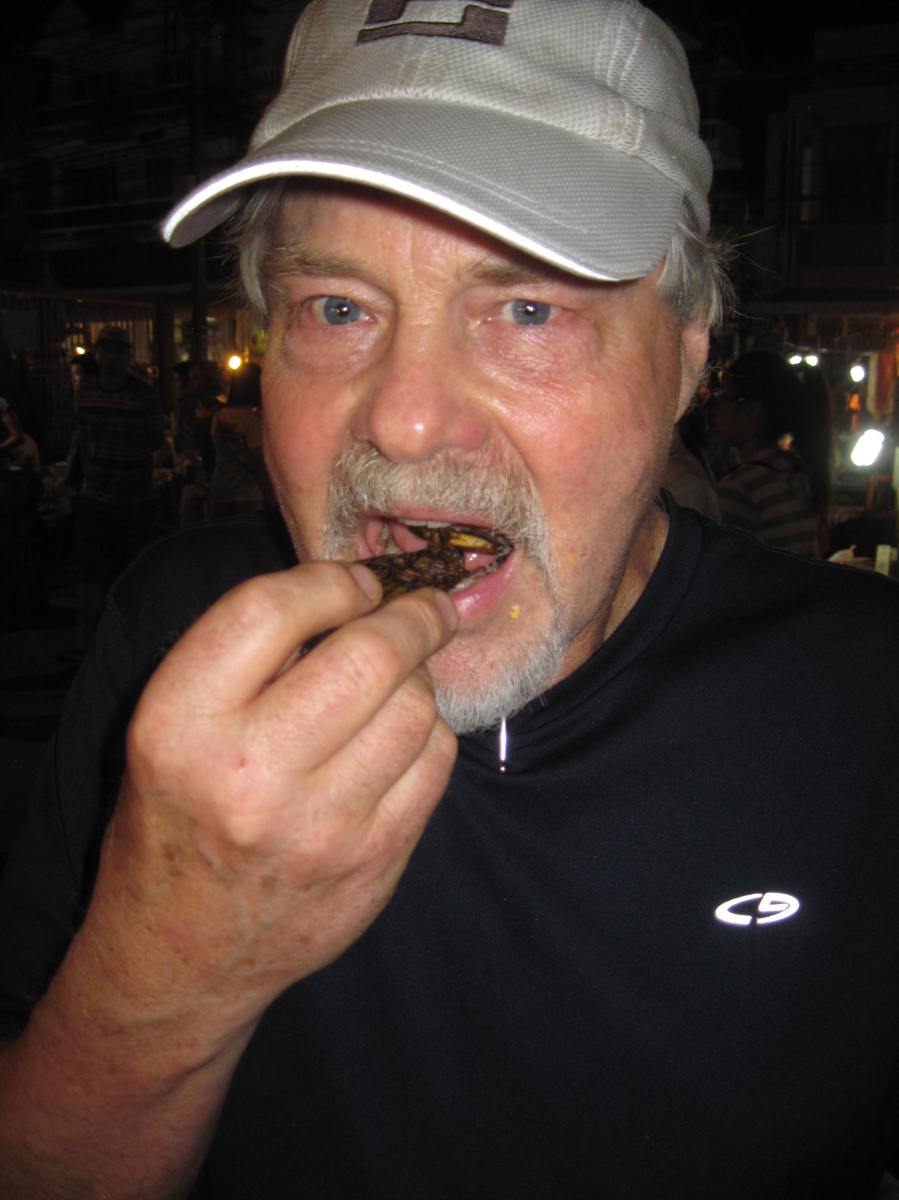 IMG_8624 Published 03/26/2015 at 1944 × 2592 in Did We Love Chiang Mai, Thailand? ← Previous Next → Wayne eating a bug at the night market