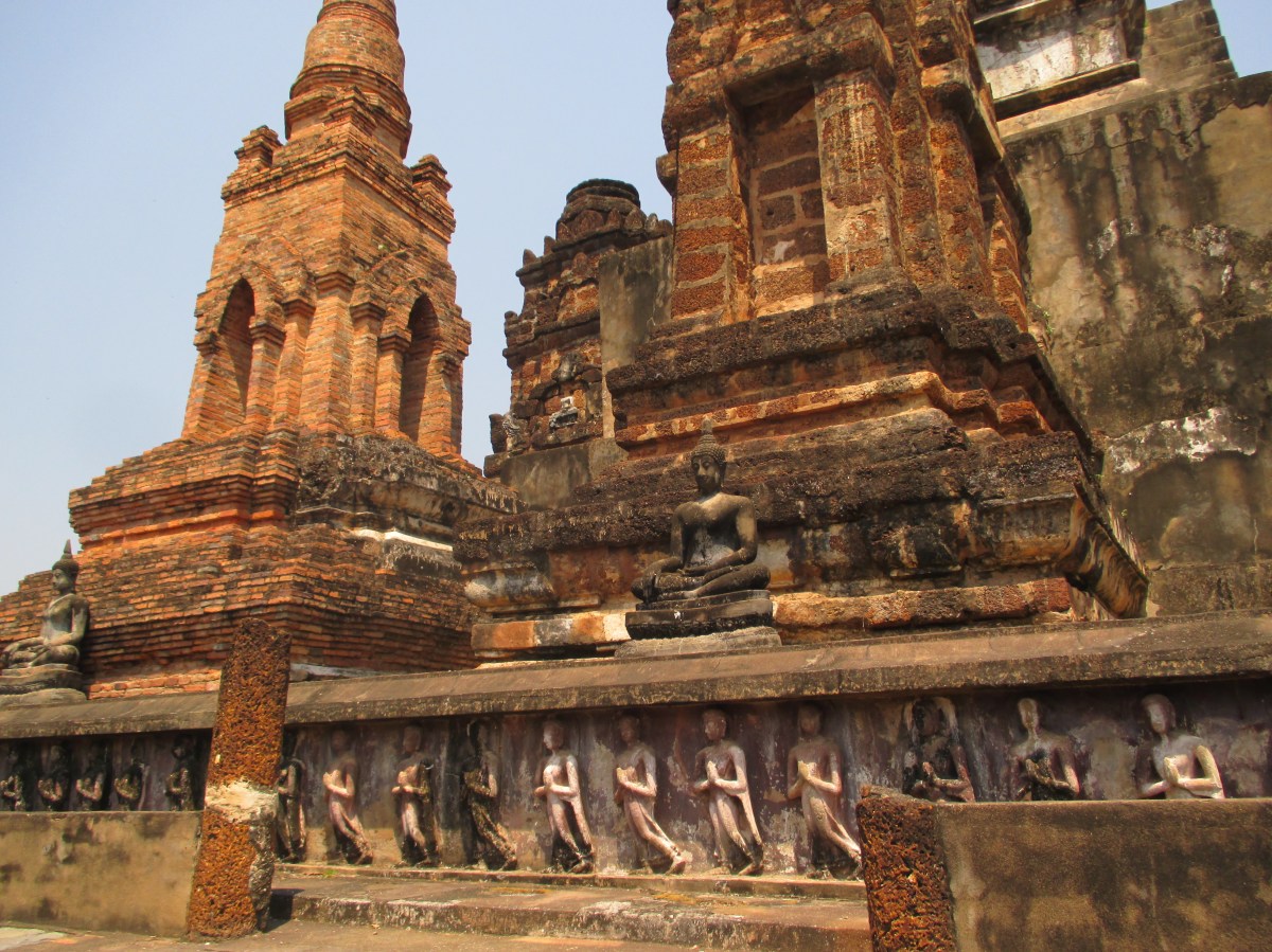 IMG_6229 Published 03/27/2015 at 3264 × 2448 in The Ancient Thai Kingdoms of Sukhothai and Ayuthaya ← Previous Next → Nice carvings at the base of the chedi