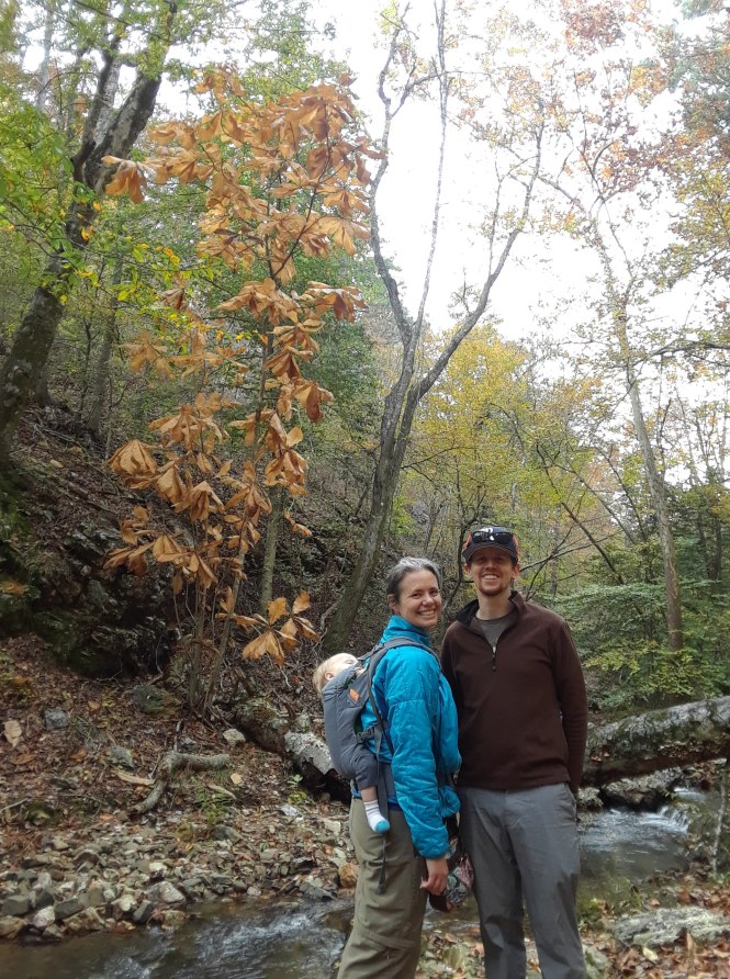 Kiddo fell asleep in the car, but we still decided to stop and take a short walk to see Sabbaday Falls. (Of course he woke up as soon as we put him in the carrier).
