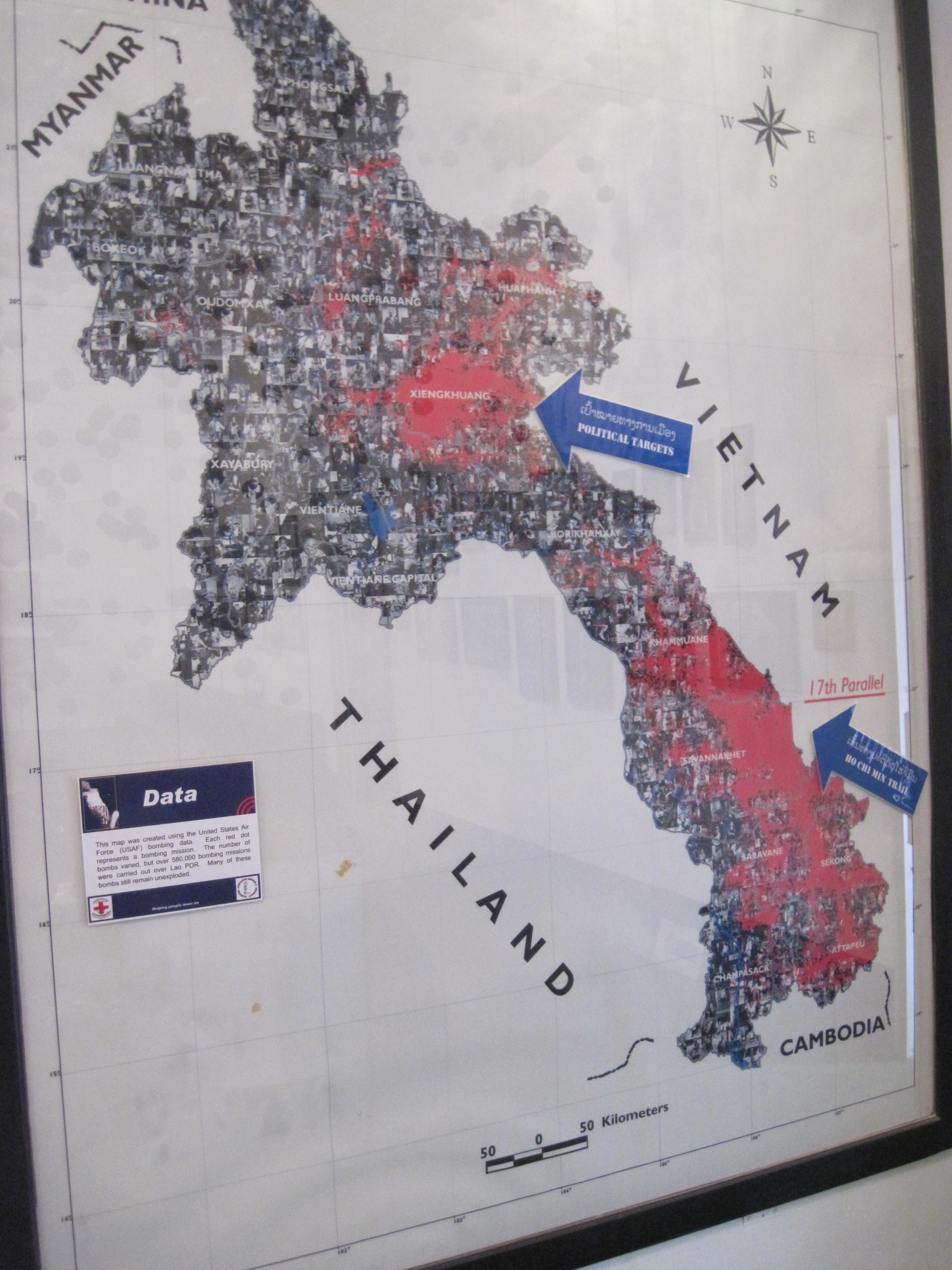 COPE is an organization that helps provide prosthetic limbs to those who canโt afford them all across Laos. The visitor center describes their work in making the prosthetics, but also talks in detail about one of the main reasons so many are needed: the tons of unexploded ordinance (UXO) that remain in the country as a result of the many bombs the US dropped during the โsecret warโ as part of the Vietnam war. We also watched a couple of short documentaries about the efforts to go in the countryside and defuse the found items before someone is hurt by them. The problem is especially tough because scrap metal can bring in a significant amount of money, so people will risk harm and handle items that they shouldnโt. The visitor center was small, but we found that it contained a lot of interesting information and was quite moving.